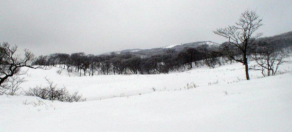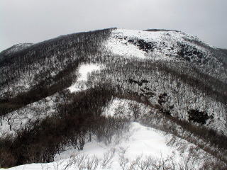ノタノ坂からの尾根が見えブナが少し残っている。