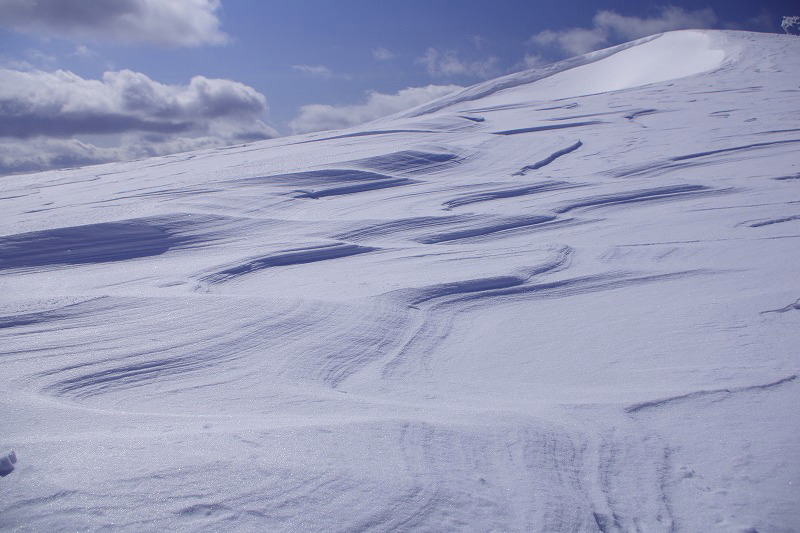 | サラサラ雪の為、雪煙が舞う |
