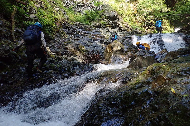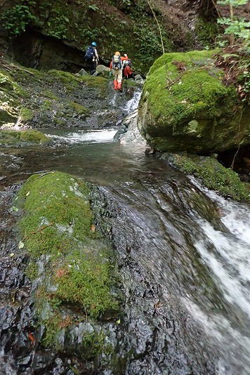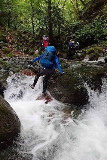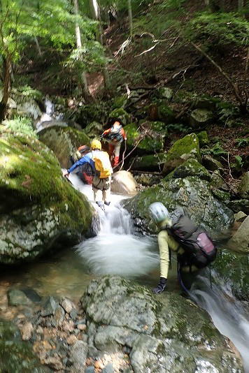 | 政所からの山歩き組と別れて藤川谷コースから入渓 | |