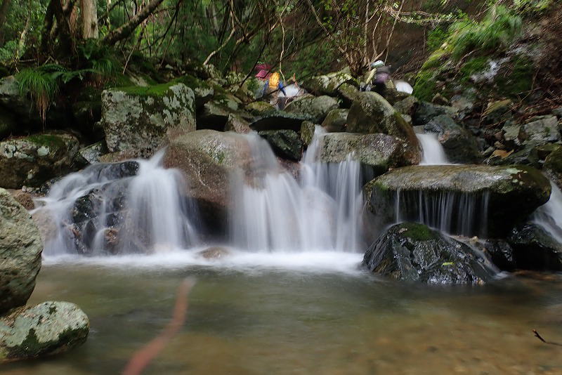 | ここからは岩にカメラを押し付けてスローシャッターにして滝を撮影。人はブレてます | |