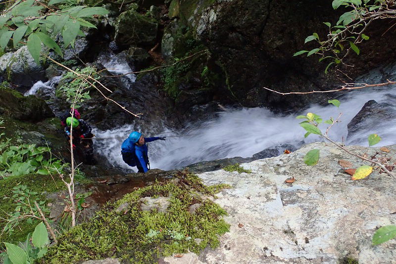 | M氏が下ろしてくれたロープで数名が後追い | |